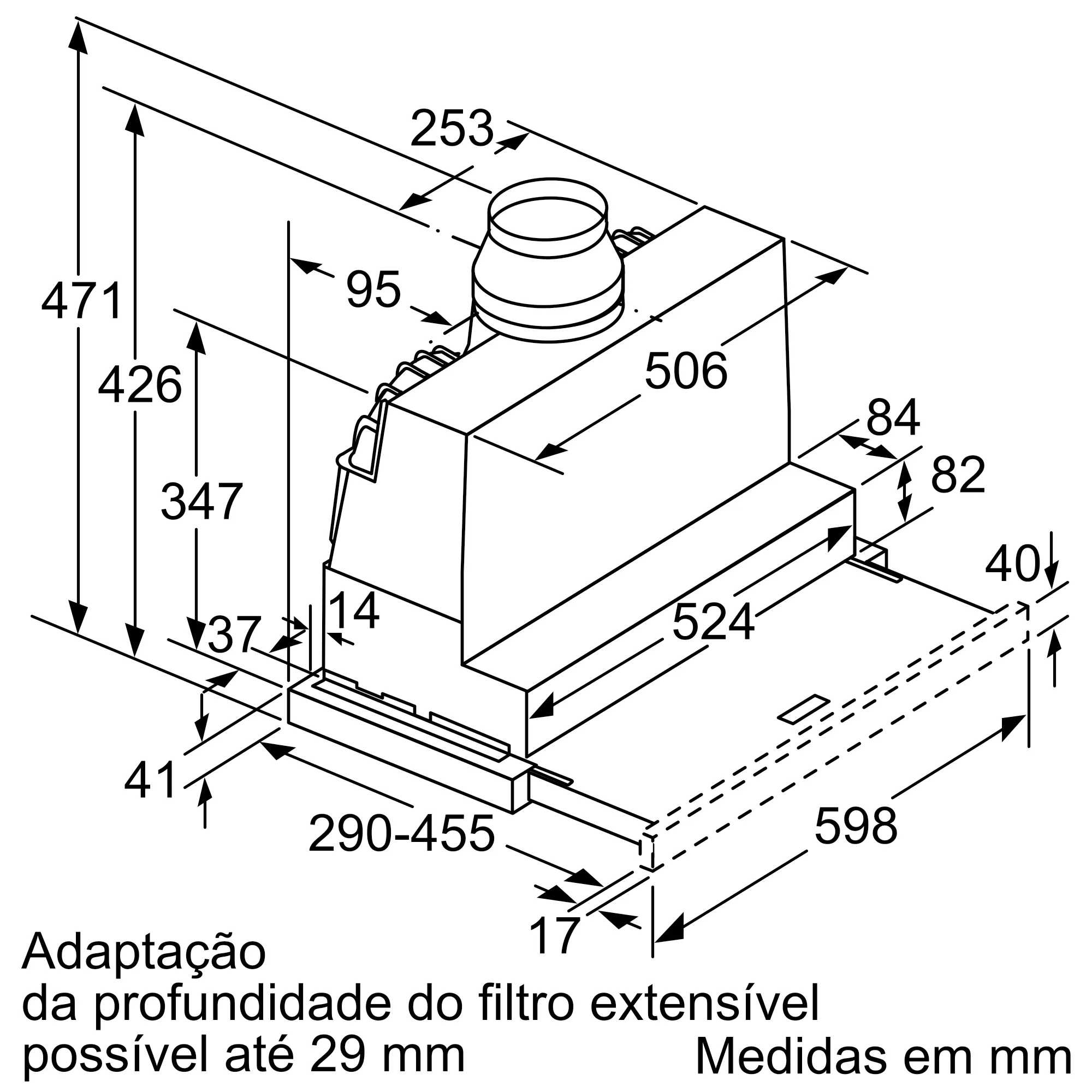 Capacidade de extração no nível normal máximo em modo de saída de ar