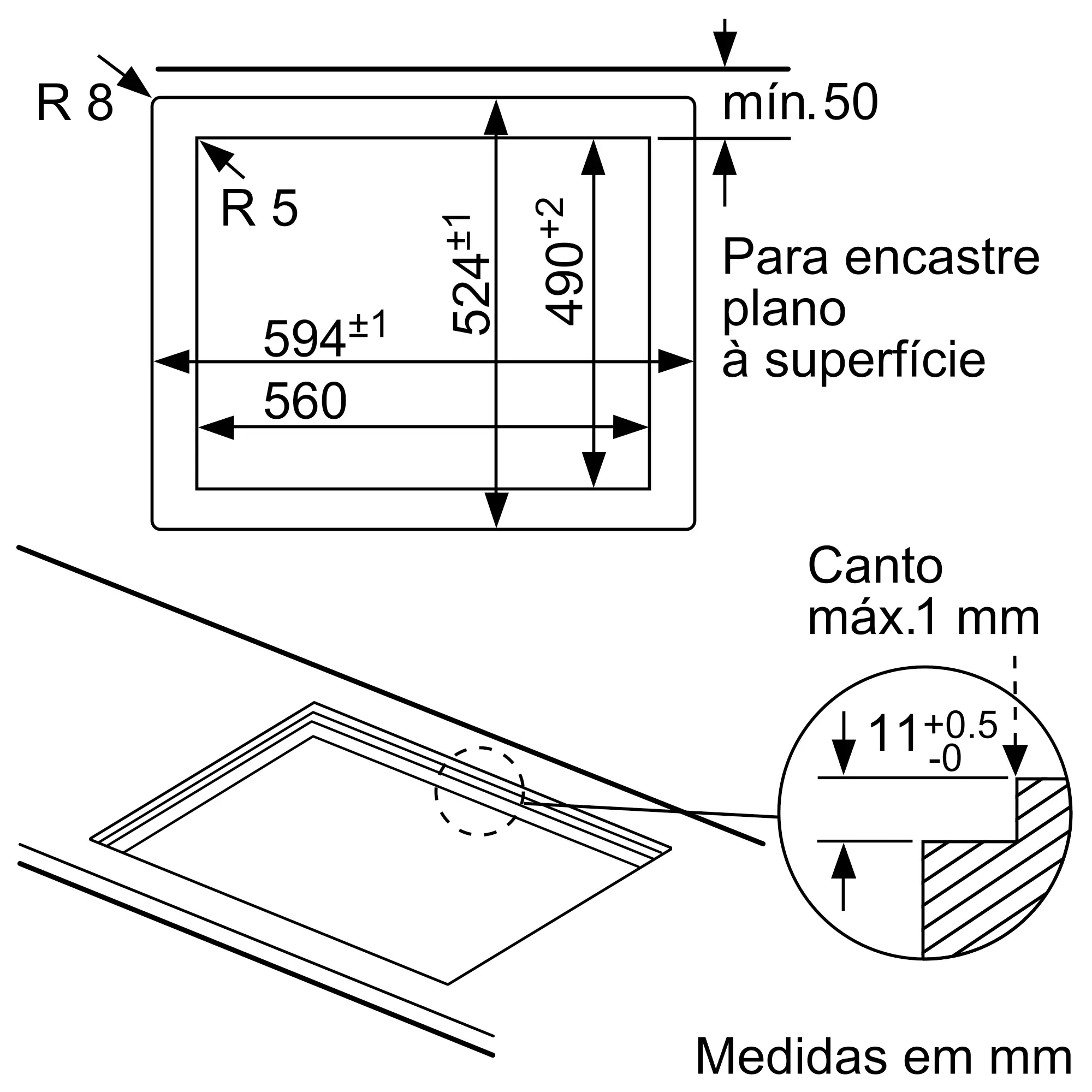 Instalação embutida ou na superfície