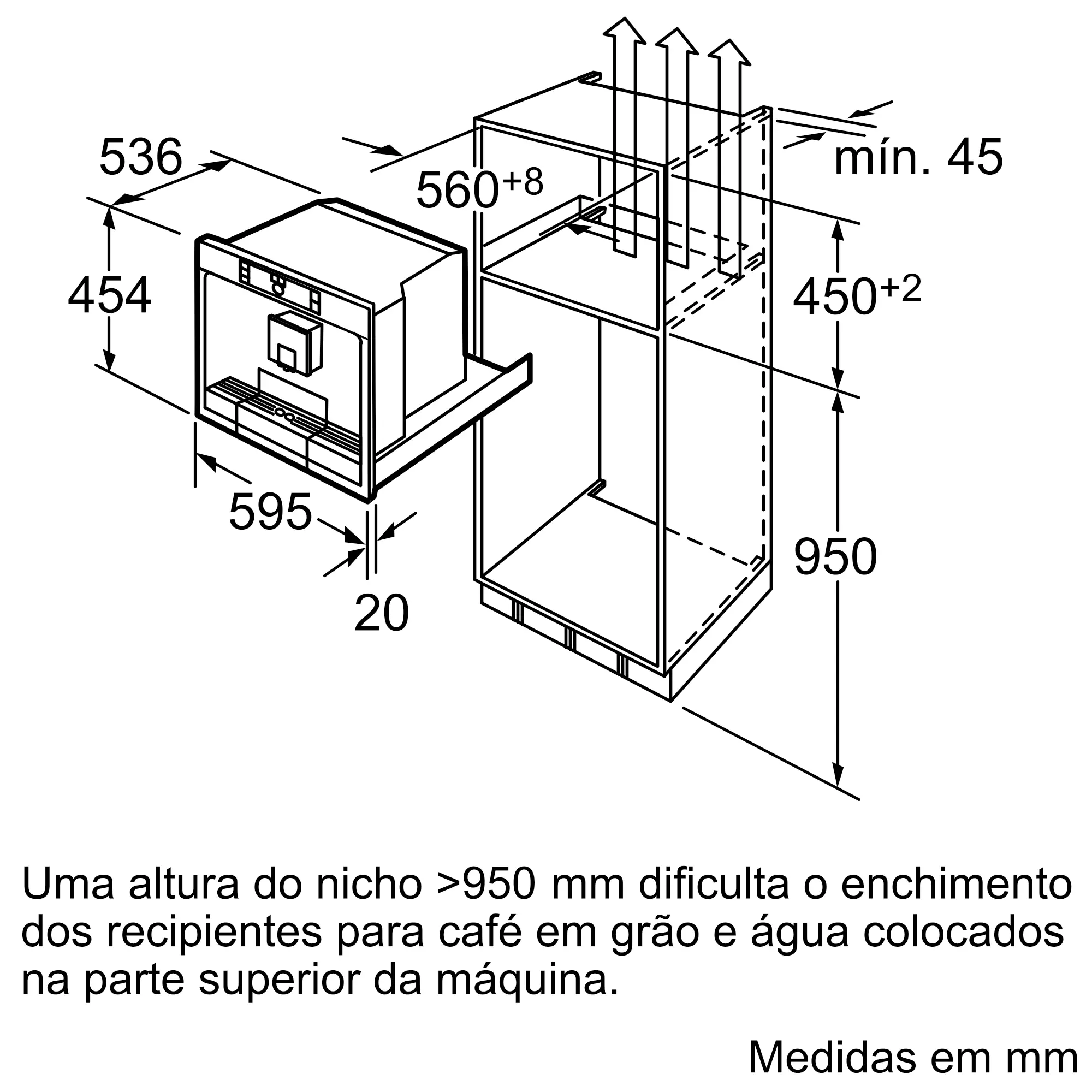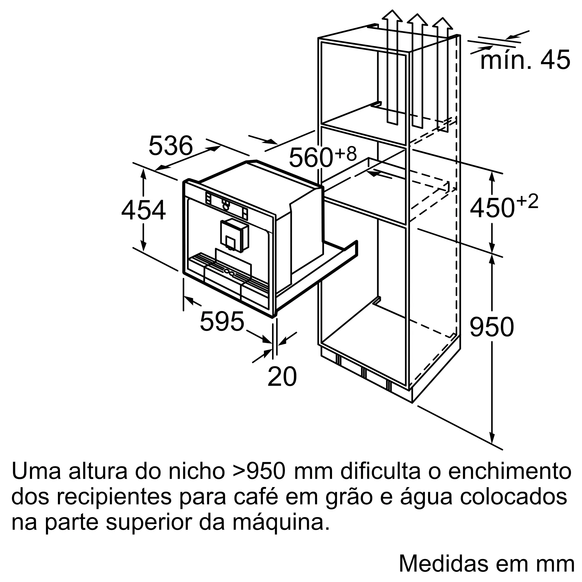 Dimensões do nicho para instalação (AxLxP) (mm)